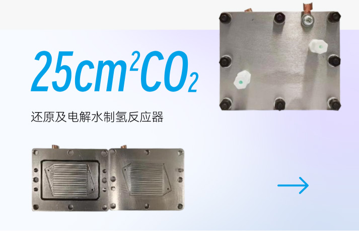 CO²还原及电解水制氢反应器与小面积反应器类似,均由正负极板组成,有效面积为4-25cm² ,四周使用硅胶密封圈密封。其中,针对反应速率的不同,我司可提供两种常规的不同气体流道反应器。